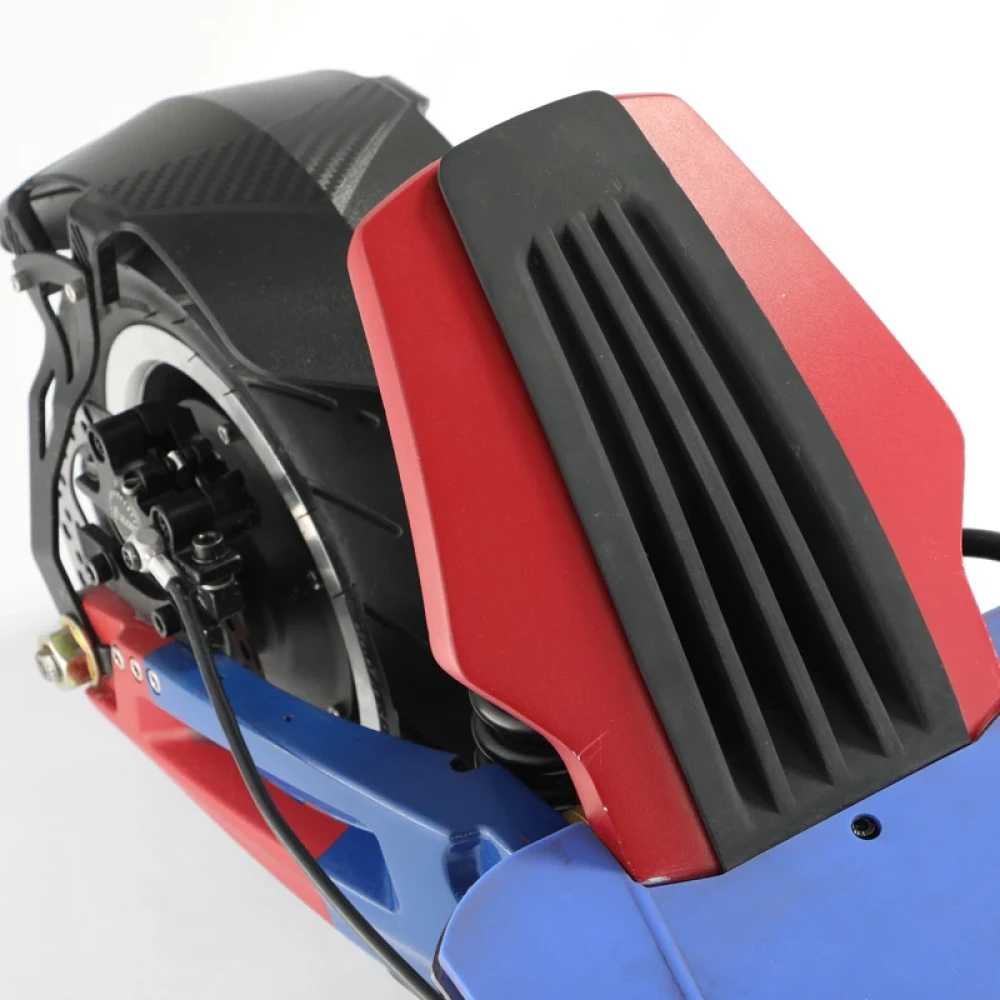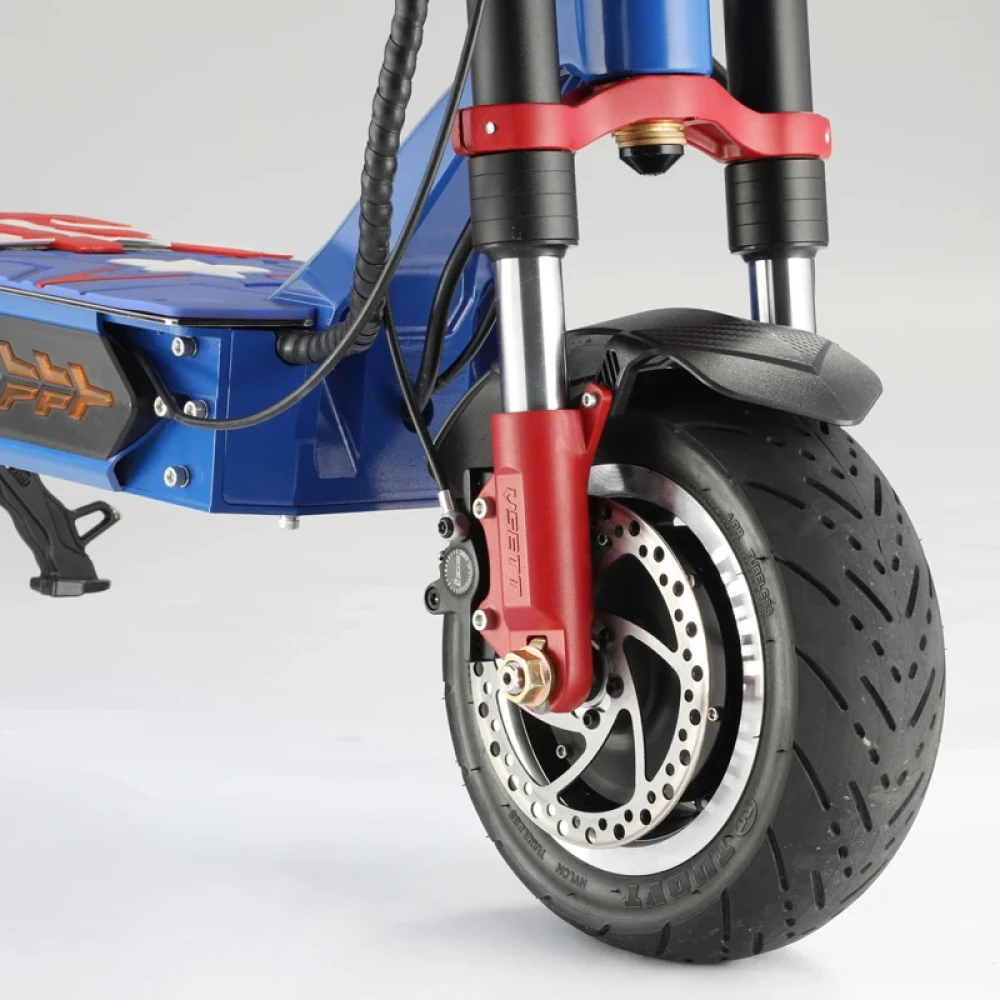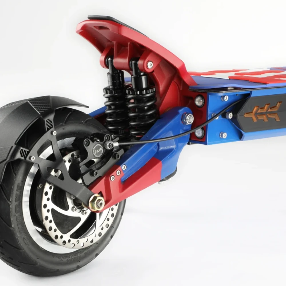 Модель оснащена современным двигателем мощностью 3000 Вт. Улучшение технических показателей техники дает возможность разгоняться до 85 км/час. Прочная алюминиевая рама рассчитана на максимальную грузоподъемность 130 кг. Широкая платформа для ног позволяет комфортно располагаться при длительных поездках. Подвески на амортизаторах рассчитаны на свободное преодоление ям и кочек. Фирменный ЖК-дисплей отображает основные показатели и скоростные характеристики модели. Дисковая гидравлическая тормозная система обеспечивает безопасное движение.