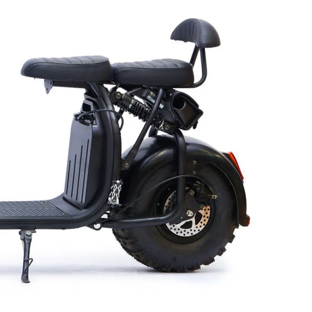 Производители оснастили Cityсoco BR-20 двигателем мощностью 1200 Вт. Скутер уверенно маневрирует и быстро набирает максимальные обороты. Транспорт может развивать 50 км/ч. На таком агрегате можно совершать повседневные поездки на работу, дополнительное сидение дает возможность перевозить пассажира. Это позволит вдвоем отправиться на отдых за город, или довезти друга до места учебы. Дальность хода на одном заряде аккумулятора составляет 50 км, батарея имеет емкость 20 А*ч.
