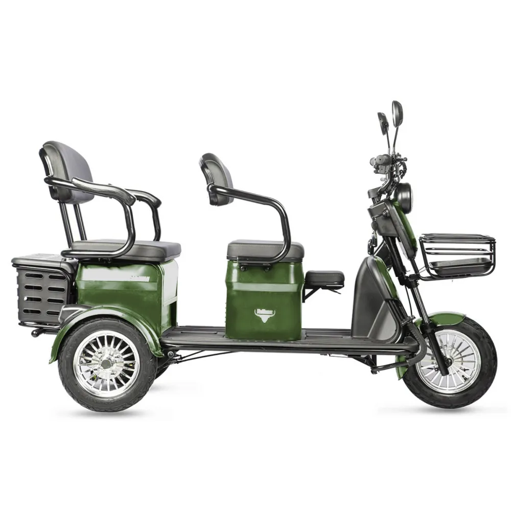 Наличие современной светодиодной фары, простых органов управления сделали трицикл востребованным и популярным на ранке товаров и услуг. Технические характеристики юркого трицикла представлены двигателем мощностью 800 Вт, способного развивать скорость до 25 км/час и преодолевать 45 км пути.  Контроль и безопасность трицикла обеспечены информационным дисплеем, предоставляющим данные о скоростных характеристиках и заряде батареи. Также трицикл укомплектован 2 брелоками сигнализации, что обеспечивает сохранность тс на паркинге.