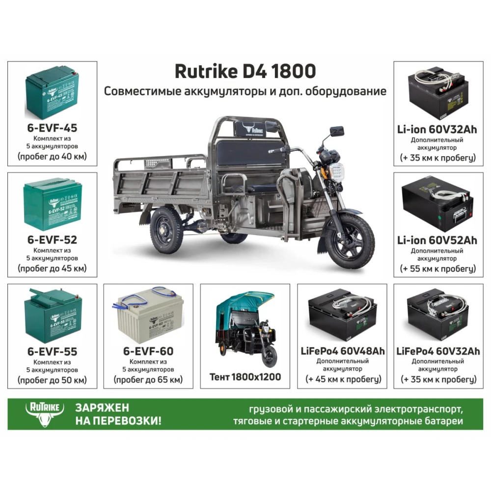 В данную модель можно добавить АКБ в пяти вариантах: