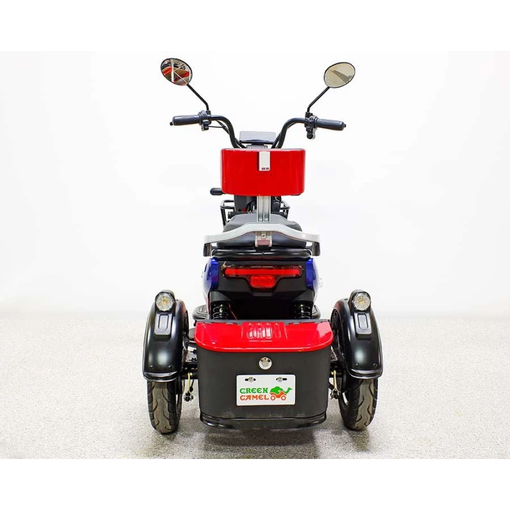 Трицикл GreenCamel Фродо Q2 (60V 500W) Trike дифференциал, красного цвета – стильная модель по приятной цене. Прочная конструкция трицикла рассчитана на максимальную грузоподъемность и подойдет для взрослых пользователей. Техника прекрасно подойдет для работы на садовом участке или перевозки грузов в складских помещениях, на ней приятно будет прокатиться по городской местности.
