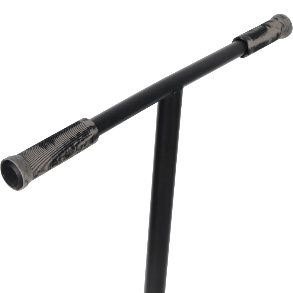 Из технических характеристик, важный для райдера, производитель выделяет такие. Удобный Т-образный руль с параметрами высоты, ширины и диаметра 86,5см*55см*31,8см, двухцветными, повторяющими анатомические части тела грипсами обеспечивают безопасность езды новичков.